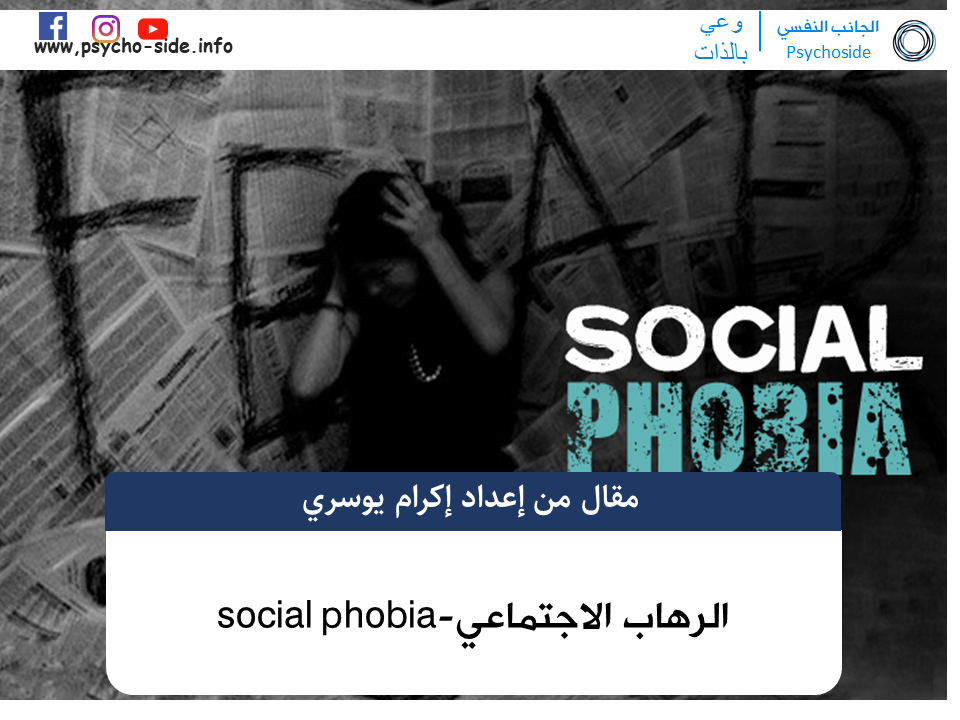 بحث عن الرهاب الاجتماعي مع المراجع. نصائح للتعامل مع الرهاب الإجتماعي. بحث عن الرهاب الإجتماعي. بحوث اجتماعية كامل الرهاب الاجتماعي بحث علمي جاهز بحوث اجتماعية بحث كامل عن الرهاب الاجتماعي من الطبيعي أن نشعر ببعض القلق أو التوتر عندما تضطرنا ظروفنا وأعمالنا إلىأداء مهمة أو قول شيء ما أمام جمع من الناس. Social phobia بأن ه الانزعاج العاطفي المفرط أو الخوف أو القلق من المواقف الاجتماعية وذلك بسبب الخوف بشأن التقييم والتدقيق من ق بل الآخرين مم ا يؤث ر سلبا.