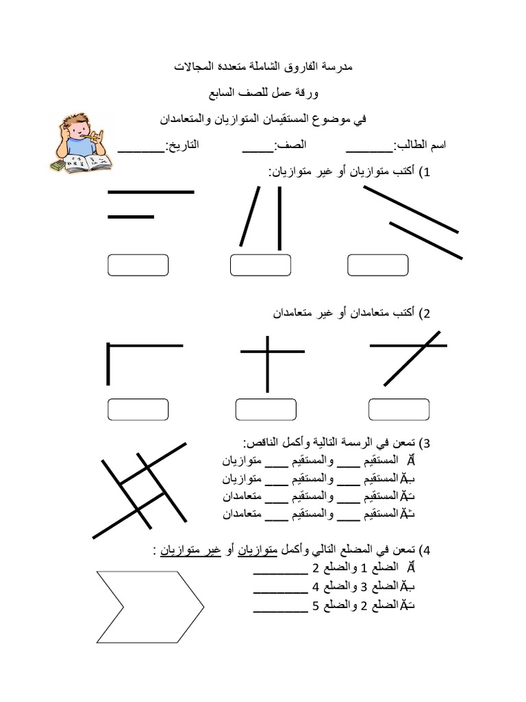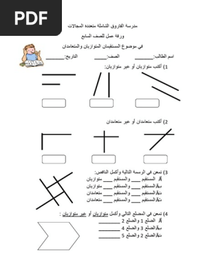 ورقة عمل في المستقيمات المتوازية والمستقيمات المتعامدة