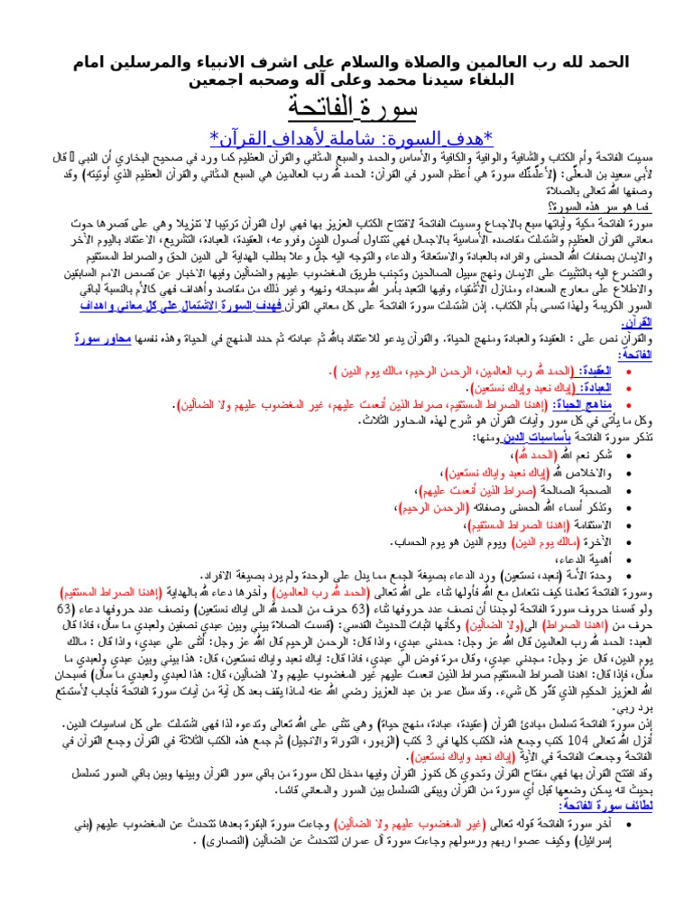 بحث عن سورة الفاتحة doc. لما كانت سورة الفاتحة لها شأن عظيم وفضل كبير من بين سور القرآن الكريم فهي ترتبط بحياة كل مسلم ارتباط ا وثيق ا ويحفظها كل إنسان صغير ا كان أو كبير ا وعالم ا وجاهل ا قهي تعالج نواحي الخلل والأمراض المنتشرة في المجتمع وهي على قصرها وجازتها تضمنت معاني القرآن الكريم كله. فضل سورة الفاتحة. وفى بعض الاحيان يكون المراجع او الملاحق مطلوبه. تنقسم خطوات عمل البحث الى ثلاثه مراحل.