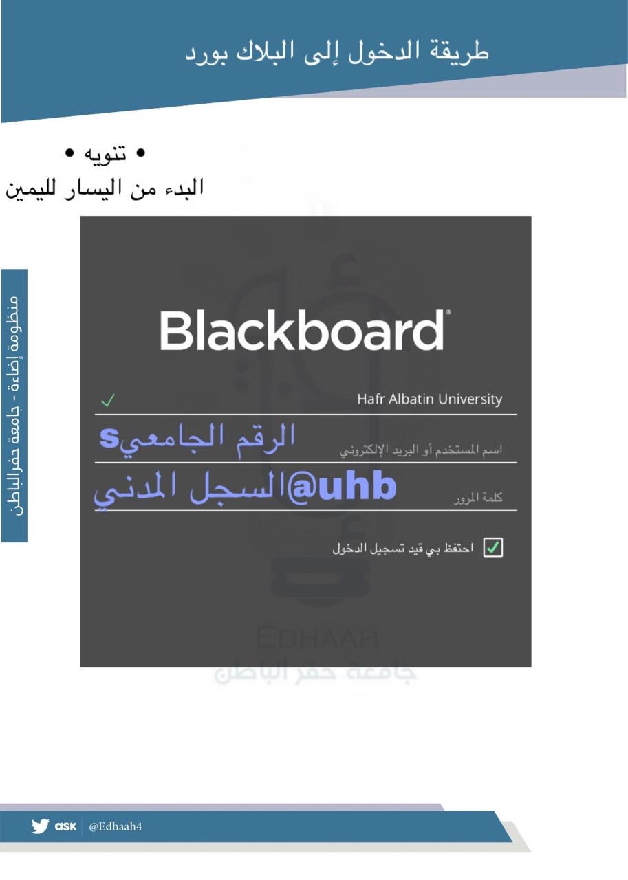 بلاك بورد جامعة حفر الباطن. الاشتراك فى القائمة البريدية. تسجيل دخول بلاك بورد جامعة حفر الباطن من خلال الموقع الإلكتروني للجامعة من الخدمات التعليمية التي تقدمها الجامعة للطلاب وأعضاء هيئة التدريس من أجل تمكينهم من الاستفادة من خدمات التعليم عن بعد في المملكة العربية السعودية. For blackboard support and queries please contact. جميع الحقوق محفوظة 2018 جامعة حفر الباطن.