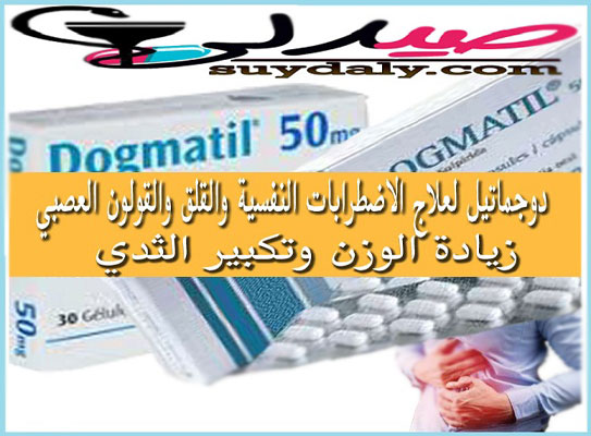 دواء دوجماتيل 50 أسرع علاج للقولون والغازات يعتبر القولون العصبي حالة منفصلة عن مرض التهاب الأمعاء ولكنه يظهر بمجموعة من الأعراض المعوية التي تحدث في العادة وهذه الأعراض من الممكن أن تستمر إلي أكثر. هو دواء يحتوي على مجموعة من المركبات الكيمائية والمرتبطة بمستقبلات معينة داخل مخ الانسان مثل مستقبل الدوبامين وكذلك كمستقبلات الهيستامين المؤثرين على ردات الفعل الانفعالية للفرد.