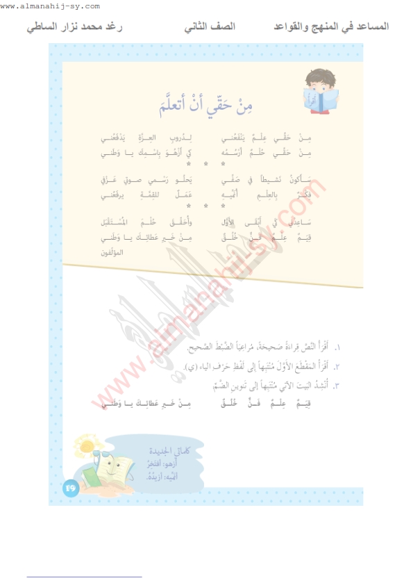 المنهاج السوري تحضير دروس عربي قراءة من حقي ان تعلم Facebook
