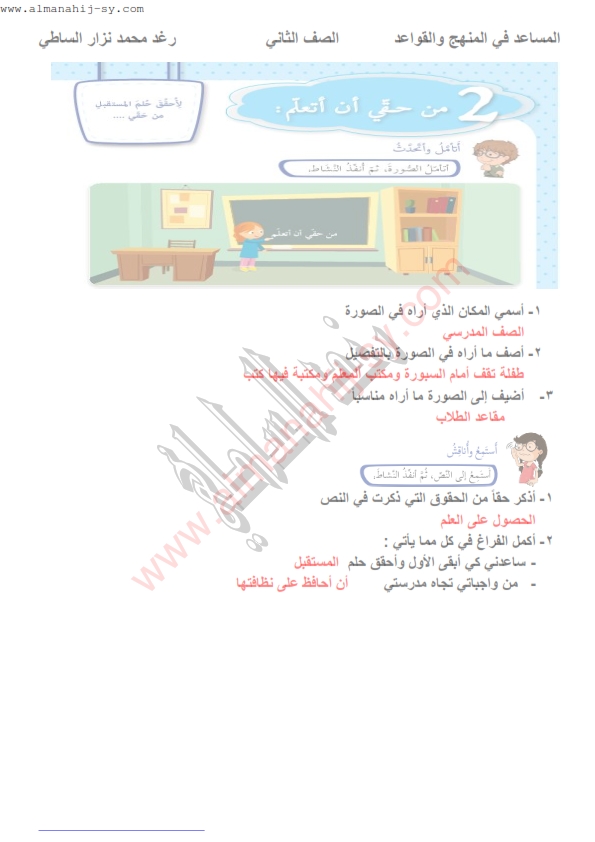 الصف الثاني تحضير درس من حقي أن أتعلم منصة أونلاين التعليمية السورية Facebook