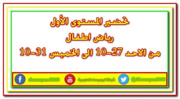 تحضير المستوى الأول لرياض اطفال من الاحد 27اكتوبر الى الخميس 31 اكتوبر نسخة جاهزة للطباعة