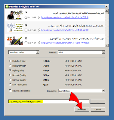 تنزيل مجموعة فيديوهات في قائمة تشغيل Playlist من موقع يوتيوب دفعة واحدة Youtube